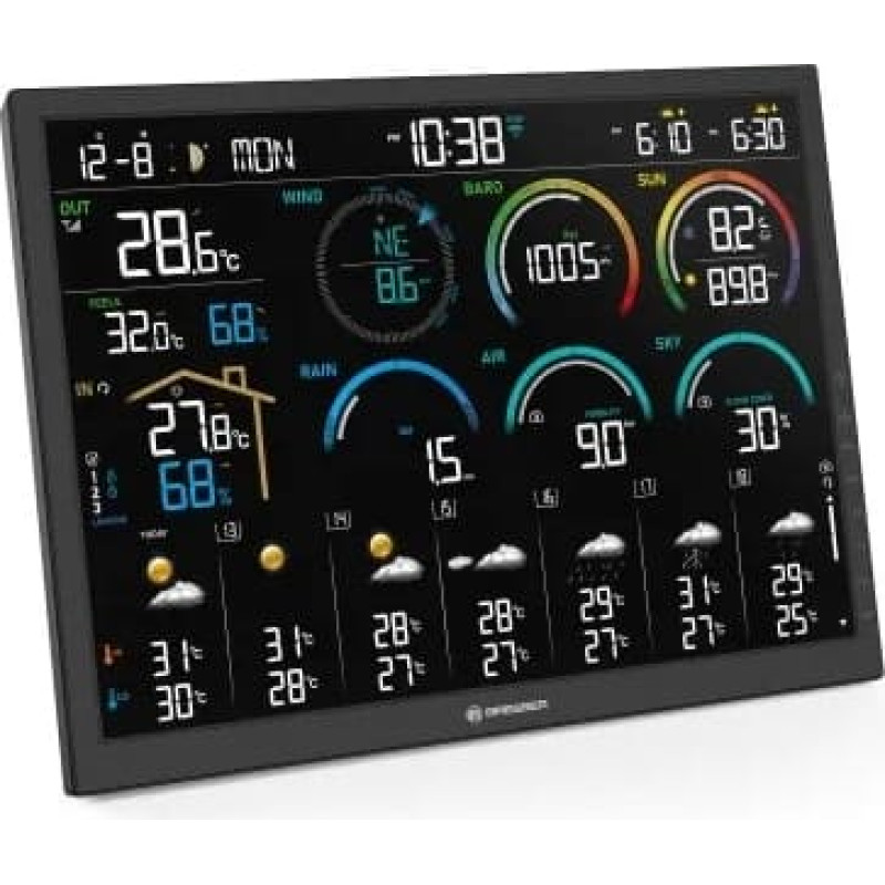 BRESSER 4CAST 18,5 collu Wi-Fi meteoroloģiskā stacija ar 8-in-1 sensoru sniedz jums vislabāko laikapstākļu pārskatu vienā mirklī. Tās milzīgais displejs apvieno plašu vietējo mērījumu un tiešsaistes klimata datu klāstu. Svarīgākie elementi: detalizēta 14 dienu prognoze un mitrās spuldzes globusa temperatūras sensors ar karstuma stresa līmeni. Pateicoties iebūvētajam Wi-Fi, laikapstākļu informācija vienmēr ir pieejama tikai viena pieskāriena attālumā — lai kur jūs atrastos.