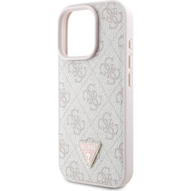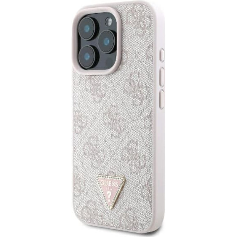 Jūsu iepirkumu grozs ir tukšs! Guess case for iPhone 16 Pro 6,3" GUHCP16LP4TDPP Leather 4G Triangle Strass pink MagSafe
