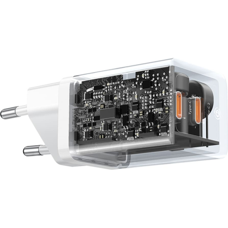 | Baseus GaN5 Pro 40W 2xUSB-C Wall Charger - White The Baseus GaN5 Pro 40W is a modern, compact charger equipped with two USB-C ports and advanced GaN technology. It provides fast, stable, and safe charging for mobile devices while maintaining ultra-compact dimensions and an elegant, white appearance. Thanks to GaN semiconductors, the device operates more efficiently, cooler, and significantly faster than traditional chargers. ~ Specification: