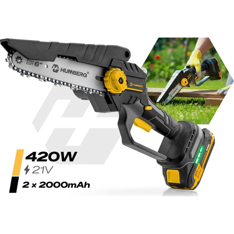 Jūsu iepirkumu grozs ir tukšs! Humberg HM-421 akumulatora mini ķēdes zāģis