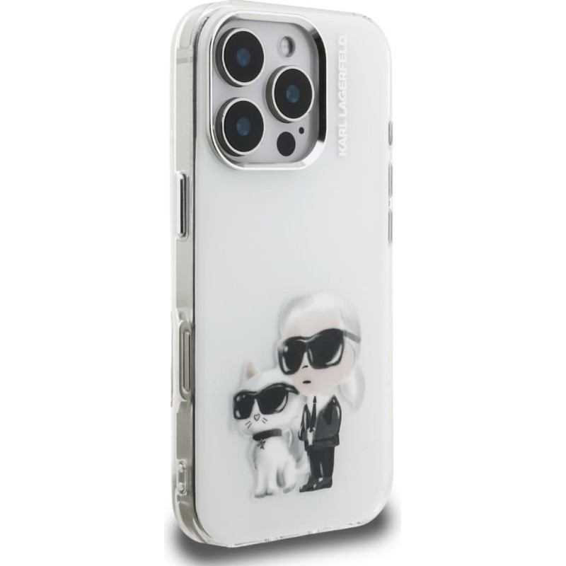 Case Karl Lagerfeld IML Aquarelle Karl & Choupette & Logo for iPhone 16 Pro white