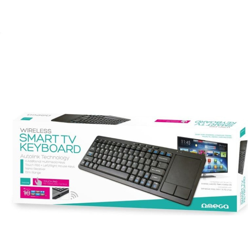Omega OKB004B wireless multimedia keyboard with touchpad is a universal solution that will work with TV, game console and PC.