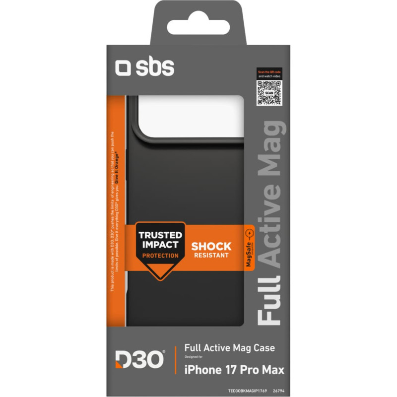Jūsu iepirkumu grozs ir tukšs! SBS iPhone 17 Pro Max vāciņš ar D3O Full Active Mag tehnoloģiju — melns