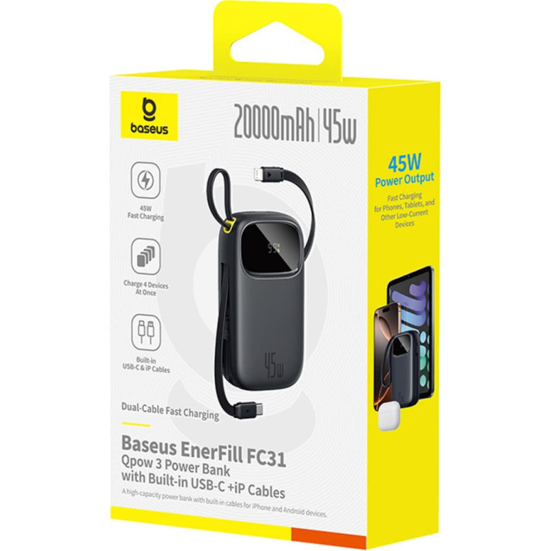 Jūsu iepirkumu grozs ir tukšs! Baseus EnerFill FC31 20000mAh 45W Powerbank ar displeju un USB-C Lightning kabeļiem - melns