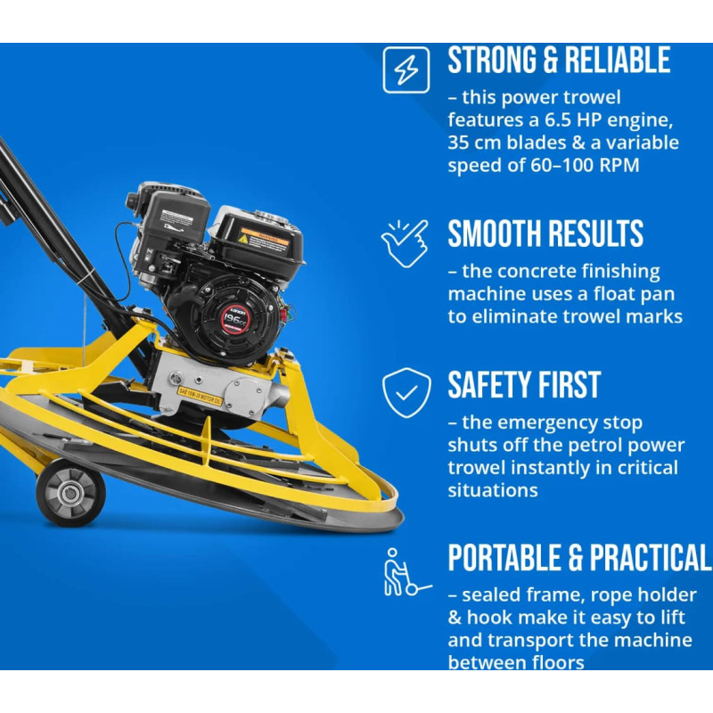 Jūsu iepirkumu grozs ir tukšs! MSW Benzīna špakteļlāpstiņa betona grīdām un klona materiāliem 6,5 ZS 100 apgr./min