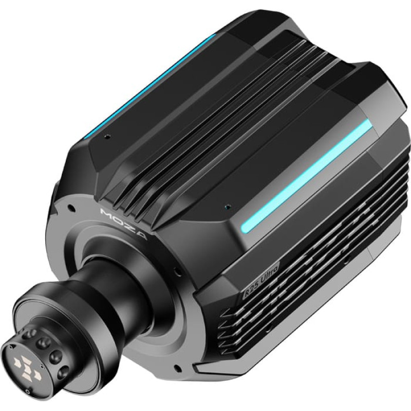 RGB backlighting and full integration with MOZA accessoriesThere are two RGB light strips on the chassis, which can be configured as desired - including to respond to in-game events such as gear changes, ABS signaling or traction control. The base is equipped with ports for direct connection of pedals, gearshift, handbrake and more without the need for external USB hubs. Thanks to the quick steering wheel connector, installation is quick and convenient.