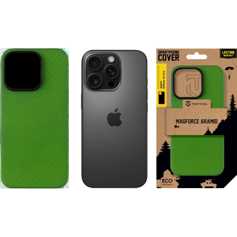 Jūsu iepirkumu grozs ir tukšs! Tactical MagForce Aramid Cover for Apple iPhone 16 Pro Green Toad