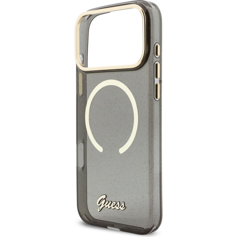 Jūsu iepirkumu grozs ir tukšs! Guess IML Glitter Script Strap MagSafe Case for iPhone 17 Pro Max Black