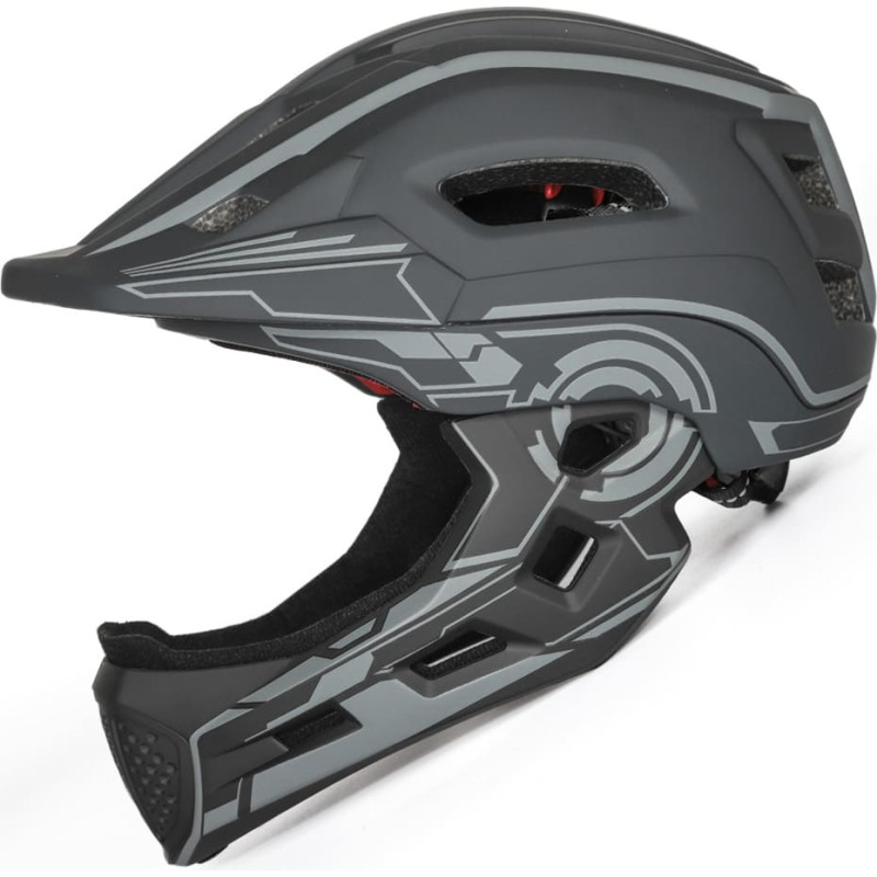 | Wozinsky Kids' Full Face Bike Helmet with USB Rear Light S - Gray The Wozinsky Kids' Full-Face Bicycle Helmet with USB S Rear Light is the perfect solution for young cyclists. This model provides comprehensive head protection, minimizing the risk of injury in the event of a crash. The reinforced full-face design and integrated LED light ensure the highest level of safety. The helmet's lightweight design, adjustable buckles, and stylish design make it both practical and attractive for children. ~ Specification: