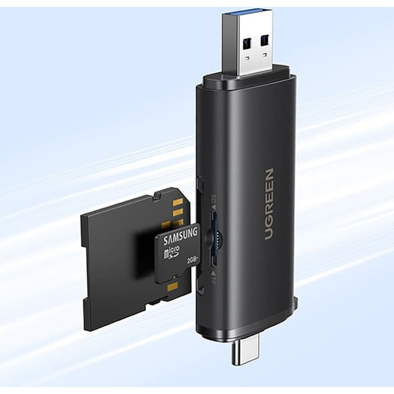 Jūsu iepirkumu grozs ir tukšs! Ugreen 2-in-1 SD microSD USB-C USB-A UHS-II atmiņas karšu lasītājs - melns