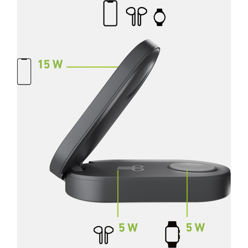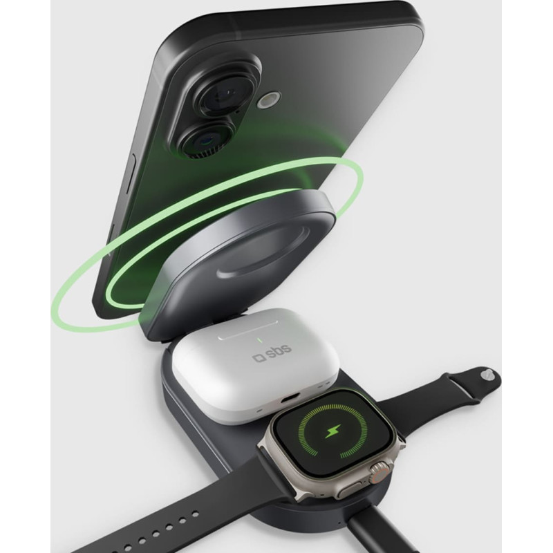 Jūsu iepirkumu grozs ir tukšs! SBS 3-in-1 bezvadu salokāma uzlādes stacija iPhone Apple Watch AirPods QI2 MFI - melna