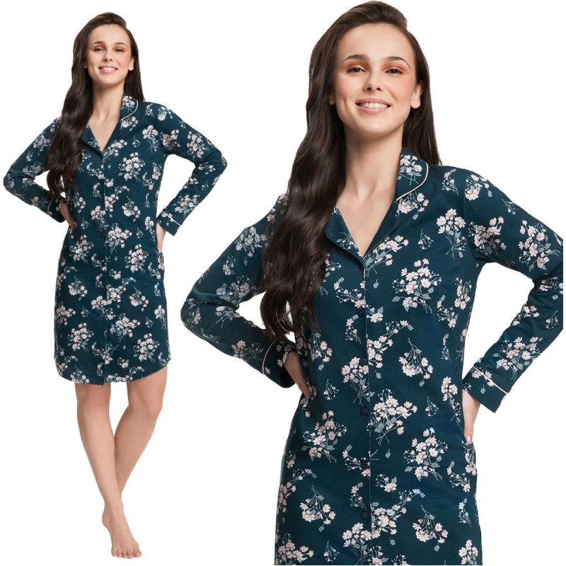 Jūsu iepirkumu grozs ir tukšs! Sieviešu krekls 42 tumši zils ar ziediem XXL kokvilnas naktsveļa ar garām piedurknēm ar rāvējslēdzēju