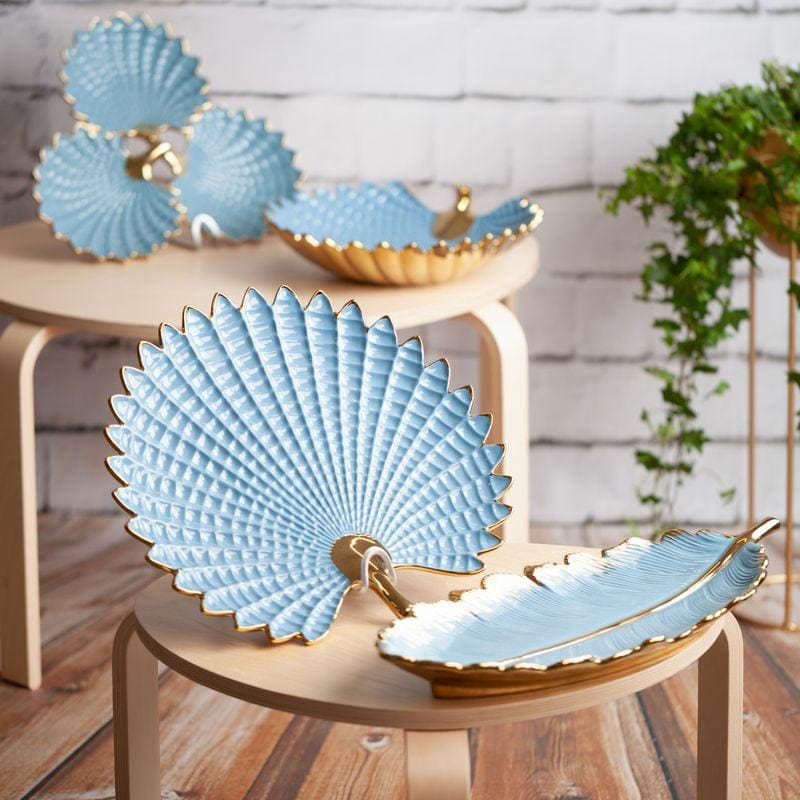 Jūsu iepirkumu grozs ir tukšs! Keramikas plāksne 37x35x6 Hiral 3 zilā zelta lapas