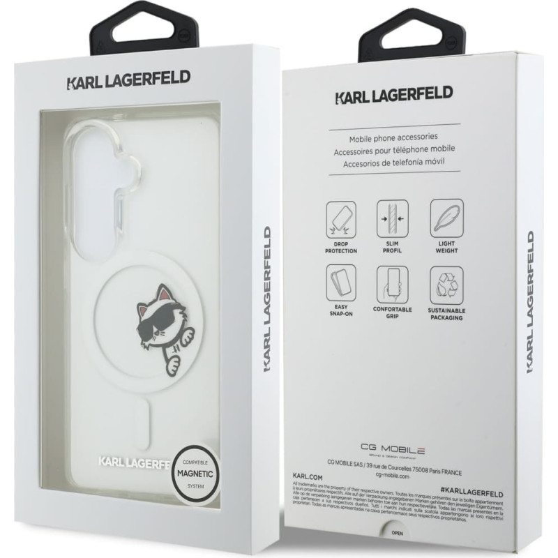 Jūsu iepirkumu grozs ir tukšs! Karl Lagerfeld IML Choupette Peekaboo Logo Magnetic Case for iPhone Samsung Galaxy S26 Transparent
