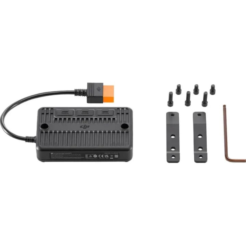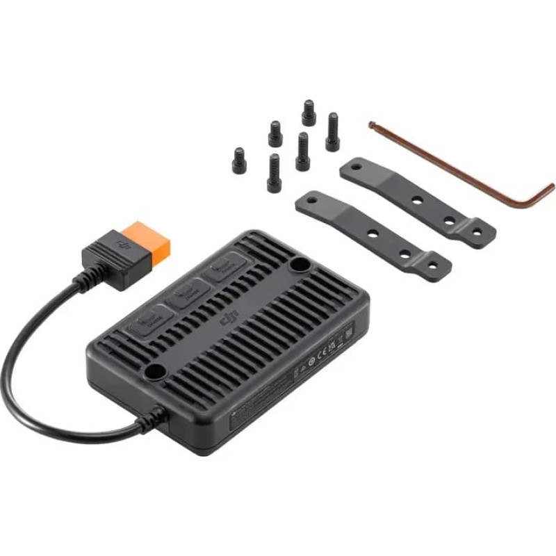 MPPT solar panel adapter for DJI power stationsThe MPPT Solar Panel Adapter for DJI Power Stations enables DJI Power Series Power Stations to be charged environmentally using solar power. The device offers a maximum output power of 200 watts on a single channel and up to 400 watts with three channels. The adapter works with an input voltage range of 12-30 V DC and a maximum current of 10 A for a single channel and 16 A with three channels.