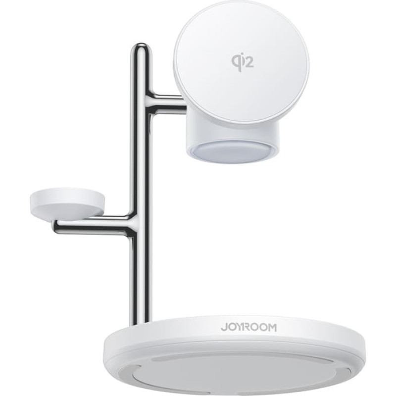 | Joyroom JR-W23 Qi2 4-in-1 desktop charger with built-in inductive night light - white The Joyroom JR-W23 is a modern 4-in-1 charging station with Qi2 technology that organizes your space and powers your most important devices simultaneously. It supports fast wireless charging for Apple devices. An integrated night light with light modes lets you adjust the ambiance to the time of day, and its elegant design complements a desk or bedside table. The adjustable arm allows you to position your phone at a comfortable angle for working or viewing. It's a practical charging and light center in one. ~ Specification: