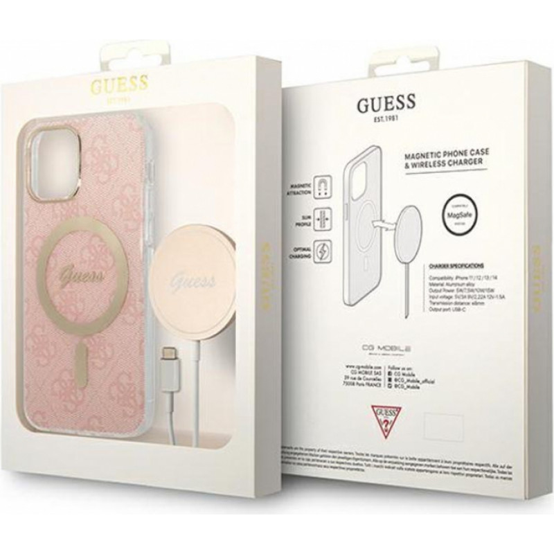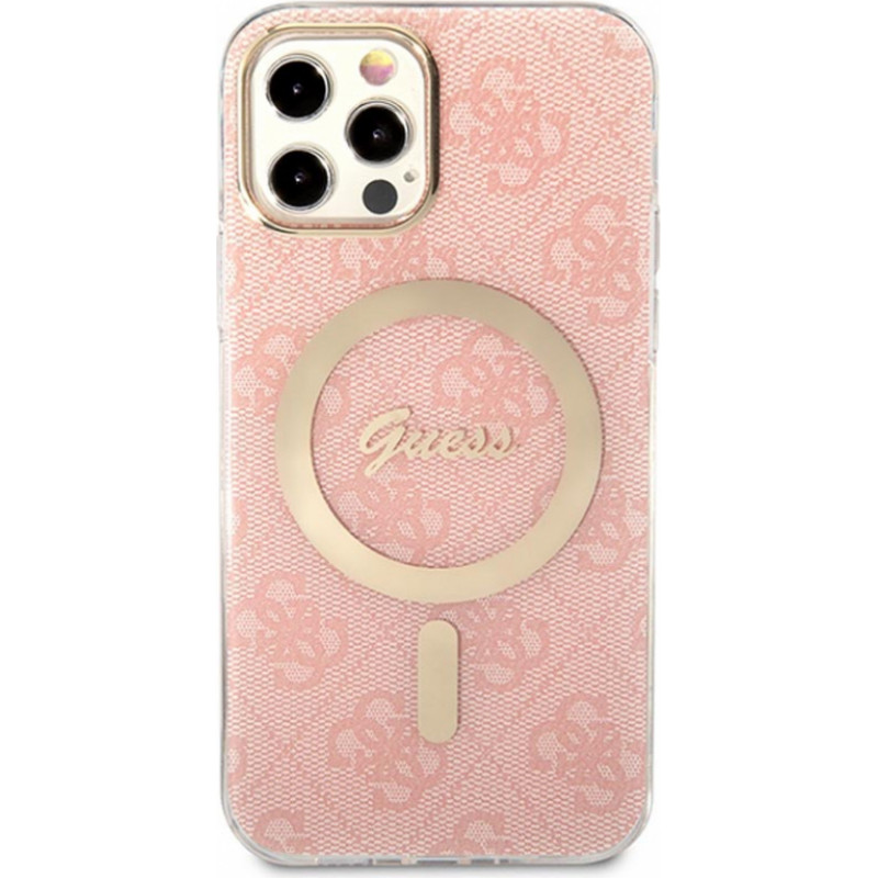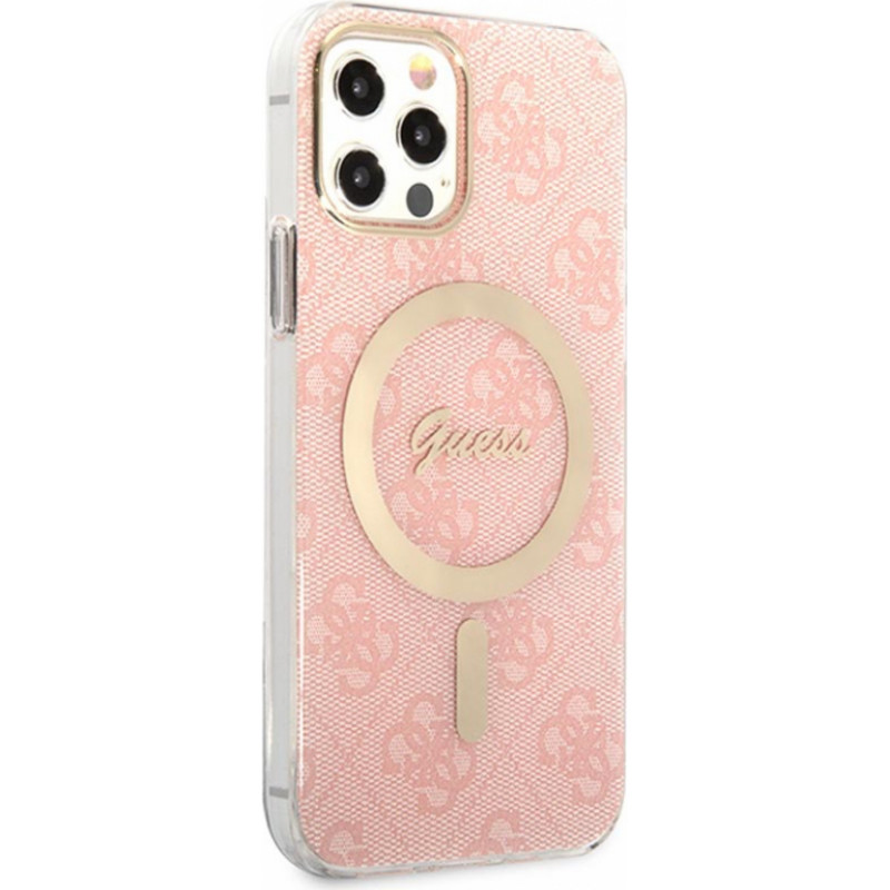 Jūsu iepirkumu grozs ir tukšs! Zestaw Guess GUBPP12MH4EACSP Case+ Charger iPhone 12|12 Pro różowy|pink hard case 4G Print MagSafe