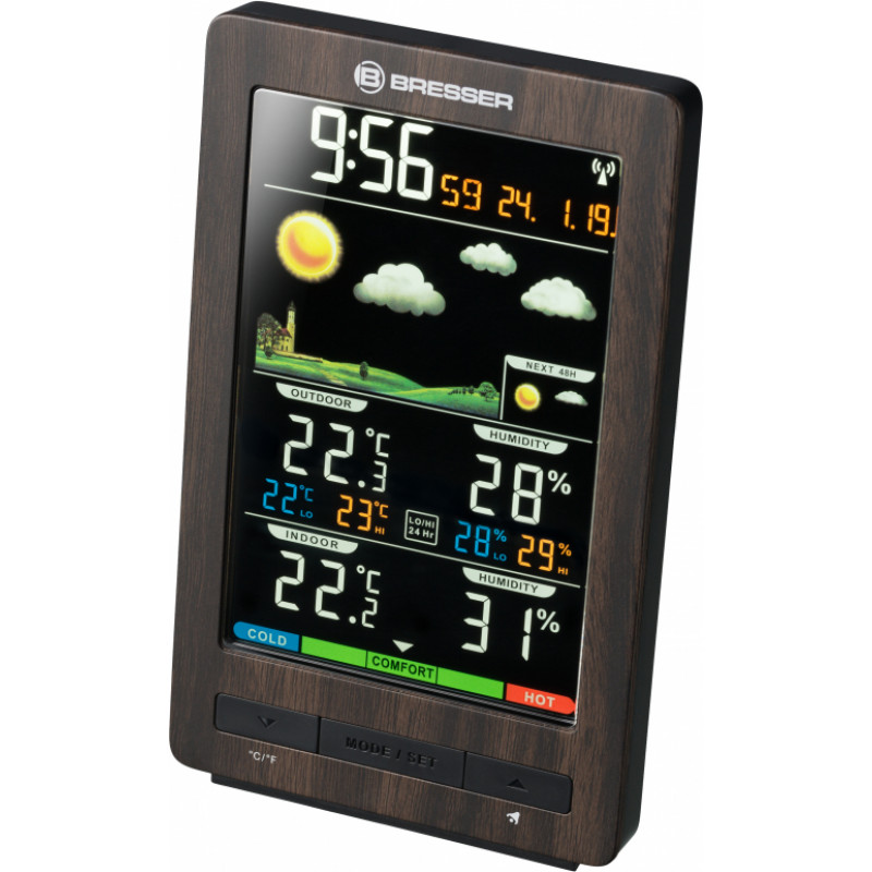 Jūsu iepirkumu grozs ir tukšs! Meteoroloģiskā stacija BRESSER ClimaTemp WS ar displeju koka dizainā