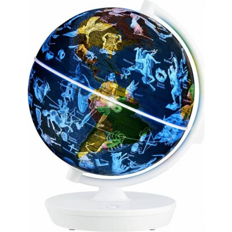During the day, the globe shows political borders, oceans and seas, countries and capitals. At night, prospective astronomers can view an illuminated map of stars and planets at the touch of a button. With 88 constellations, the globe is transformed into an impressive room decoration, ideal for children who find a night light pleasant.