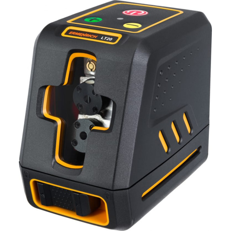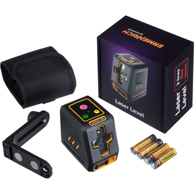 Meet the Ermenrich LT20 Laser Level – a universal tool for construction, renovation, and finishing work. It is equipped with red laser LEDs that generate two cross lines. The level can be up to 15m away from the surface on which the laser beams are projected. Horizontal and vertical sweep – 130°. The compensator aligns the laser beam lines. Given the low measurement error, it helps you to mark out the space as accurately as possible. The Ermenrich LT20 can be mounted on a horizontal surface or mounted on a standard tripod. Using a tilt head tripod, you can tilt the level to get the required laser line configuration. The device is dust- and splashproof, which is particularly valuable in renovation and construction environments. The level is powered by standard batteries. There are 10 levels of brightness available. Key features: