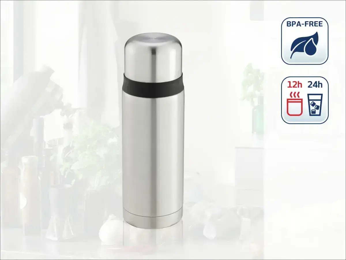 Termoso kamštis užsifiksuoja, todėl skysčiai neprateka. Atsparus sutrenkimams, idealus partneris kelyje.