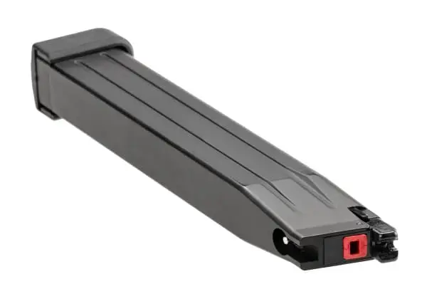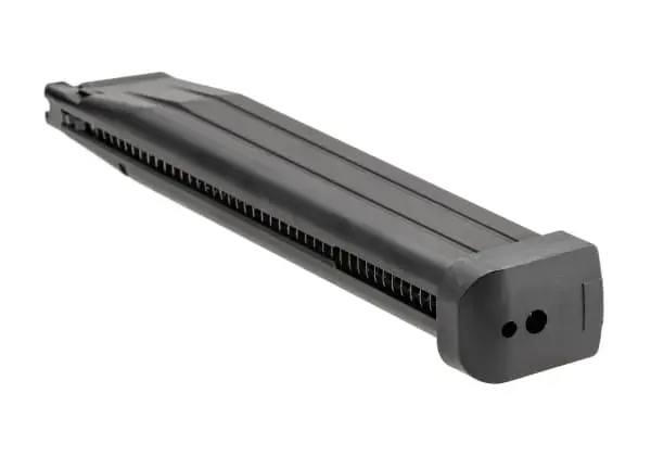 Hi-Capa 5.1 GBB airsofto dėtuvė, kurios talpa 50 šovinių.