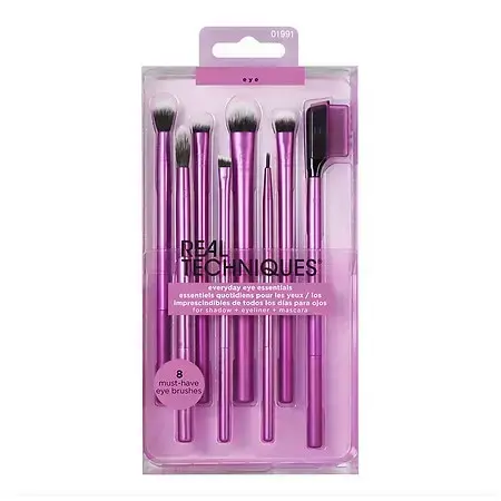 The Real Techniques Everyday Eye Essentials Makeup Brush Set has every eye brush you need to complete your makeup look- whether you're a minimalist or over-the-top. The makeup brush kit includes: the 307 Shading Brush, 310 Essential Crease Brush, 304 Defining Crease Brush, 313 Definer Brush, 332 Smudge Brush, 308 Medium Shadow Brush, 312 Lash Separator, and the 311 Flat Liner. These 8 eyeshadow brushes are must-haves for effortlessly blended eye looks. They can be used with gels, creams, liquids, and powders, so you can seamlessly blend pigment from eye contour to crease. Achieve any eye look your heart desires! Go for a bold, smoky look, or a minimal, natural look. This brush kit has a makeup tool for everything. The Real Techniques Everyday Eye Essentials Set is easy to clean using our Real Techniques Brush + Sponge Cleansing Gel. It's also 100% cruelty-free and made with super soft, UltraPlush synthetic bristles. | Debenhams Everyday Eye Essentials.