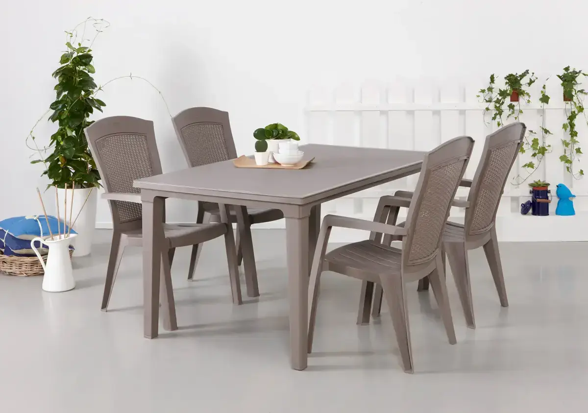 Tam ir ergonomiski veidota atzveltne, bet krēsla faktūra glīti imitē rotangpalmas faktūru. Krēsls ir viegli kopjams un izturīgs pret laikapstākļu un UV staru nelabvēlīgo ietekmi.