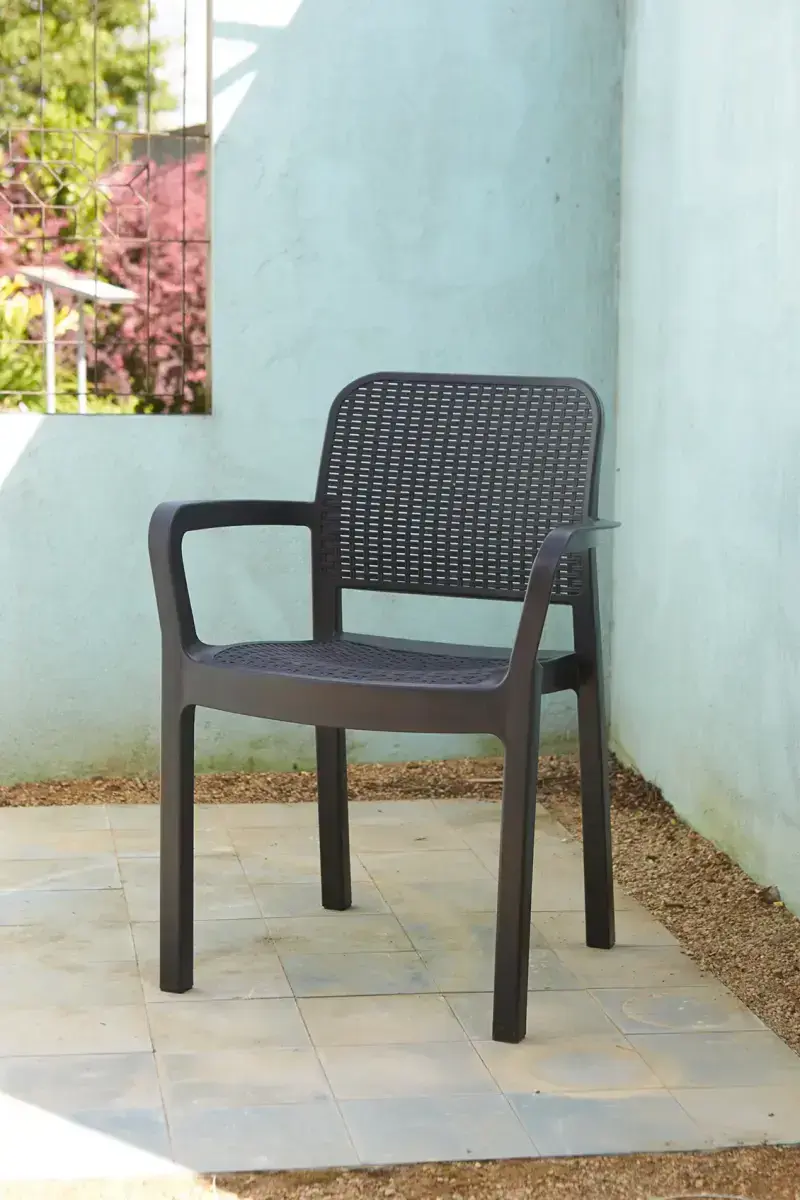 Tam ir ergonomiski veidota atzveltne un stabili roku balsti, bet krēsla faktūra glīti imitē rotangpalmas faktūru. Krēsls ir viegli kopjams un izturīgs pret laikapstākļu un UV staru nelabvēlīgo ietekmi.