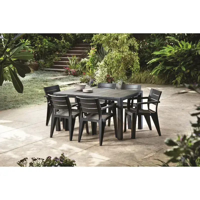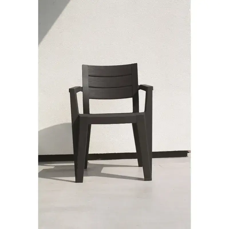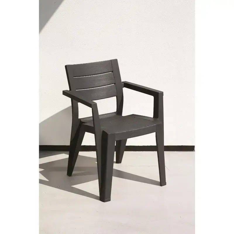 Dārza krēsla Julie mūsdienīgais dizains ir piemērots dažāda veida galdiem. Ērta Julie krēsla riekšrocība: sakraujami viens uz otra. Viegli tīrāmi, nav nepieciešama liela apkope. Ražoti no mūsdienīgas plastmasas, kas ir izturīga pret sliktiem laika apstākļiem.