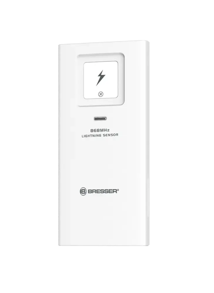 BRESSER zibens sensors nosaka pērkonu aptuveni 40 km rādiusā. Aprīkots ar regulējamu jutību, LED indikatoru un ir saderīgs ar BRESSER meteoroloģiskajām stacijām (7003210, 7003220, 7003230). Nepieciešamas 2x AA baterijas.