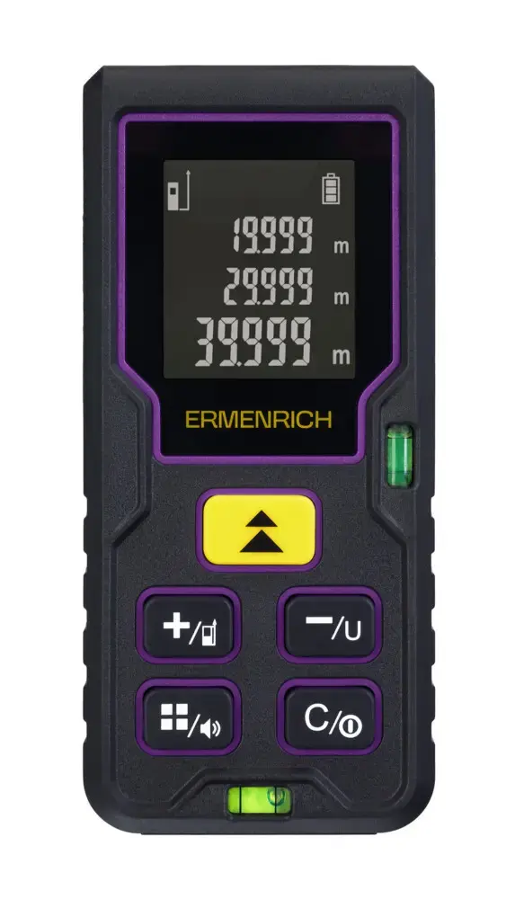 The Ermenrich Reel PLUS GD40 laser meter is a tool for performing various measurements in small and medium-sized rooms. This versatile tool can be used in construction and renovation works, as well as in interior decoration, manufacturing, and assembly, and in many other application areas. The maximum measurement distance of the device is 40 meters. In addition to single distance measurements, the laser meter can measure area and volume in continuous measurement mode.