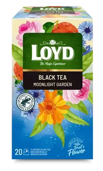 Aromatizēts melnās un zaļās tējas maisījums LOYD Moonlight Garden 20x1,75 g