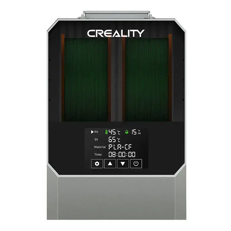 The Creality Space Pi Filament Dryer Plus is an advanced filament dryer that is designed to double drying capacity. With the ability to accommodate two rolls of filament at the same time, this device provides fast and efficient drying, resulting in better quality 3D prints. The dryer is equipped with precise temperature control and 360° PTC technology, which guarantees even heating and effective removal of moisture from the filaments, preventing problems such as nozzle clogging, poor layer adhesion or misalignment during printing.