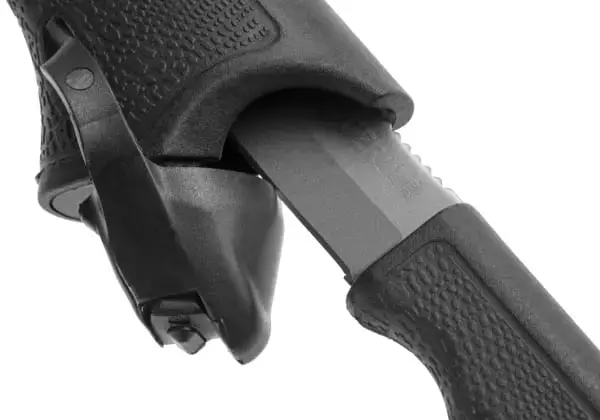 Axes have been around for ages and even the award-winning axes from Gerber are hardly new, but the Gator Axe still is a powerful breakthrough. The Gator Axe comes with a Gator textured rubber to the grip for an unprecedented level of comfort and control. Beneath that tactile rubber surface is a nearly indestructible glass-filled nylon handle. Inside the handle there is a hollow area containing a magnet that can hold the included knife. The axe head is engineered from forged steel, which does an outstanding job of keeping its edge.