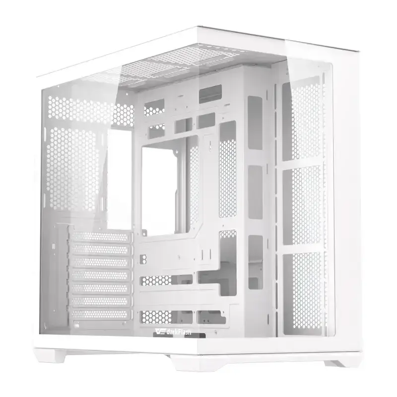 The DarkFlash C280 is a spacious computer case designed for complex configurations and impressive component display. It supports E-ATX, ATX, Micro-ATX, and ITX motherboards, as well as graphics cards up to 420 mm in length and CPU coolers up to 155 mm in height. This gives you a lot of freedom in choosing components. The 443 × 277 × 426 mm design is made of SPCC sheet metal and complemented by tempered glass panels for a solid and modern look.
