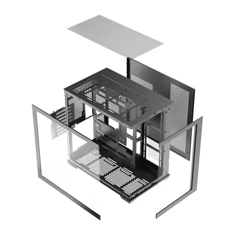The case has been designed to allow quick and easy removal of panels, which facilitates expansion and maintenance of the set. The whole thing is complemented by dust filters located at the top and bottom of the structure, which limit the ingress of contaminants into the interior.