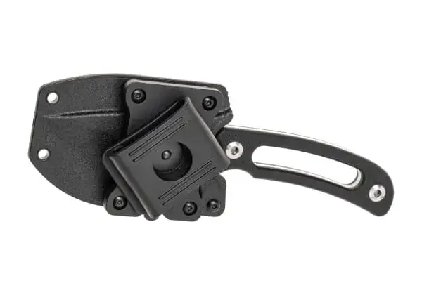 Tactical fixed blade knife with D2 steel blade. Blade length: 102 mm. Grip length: 131 mm.